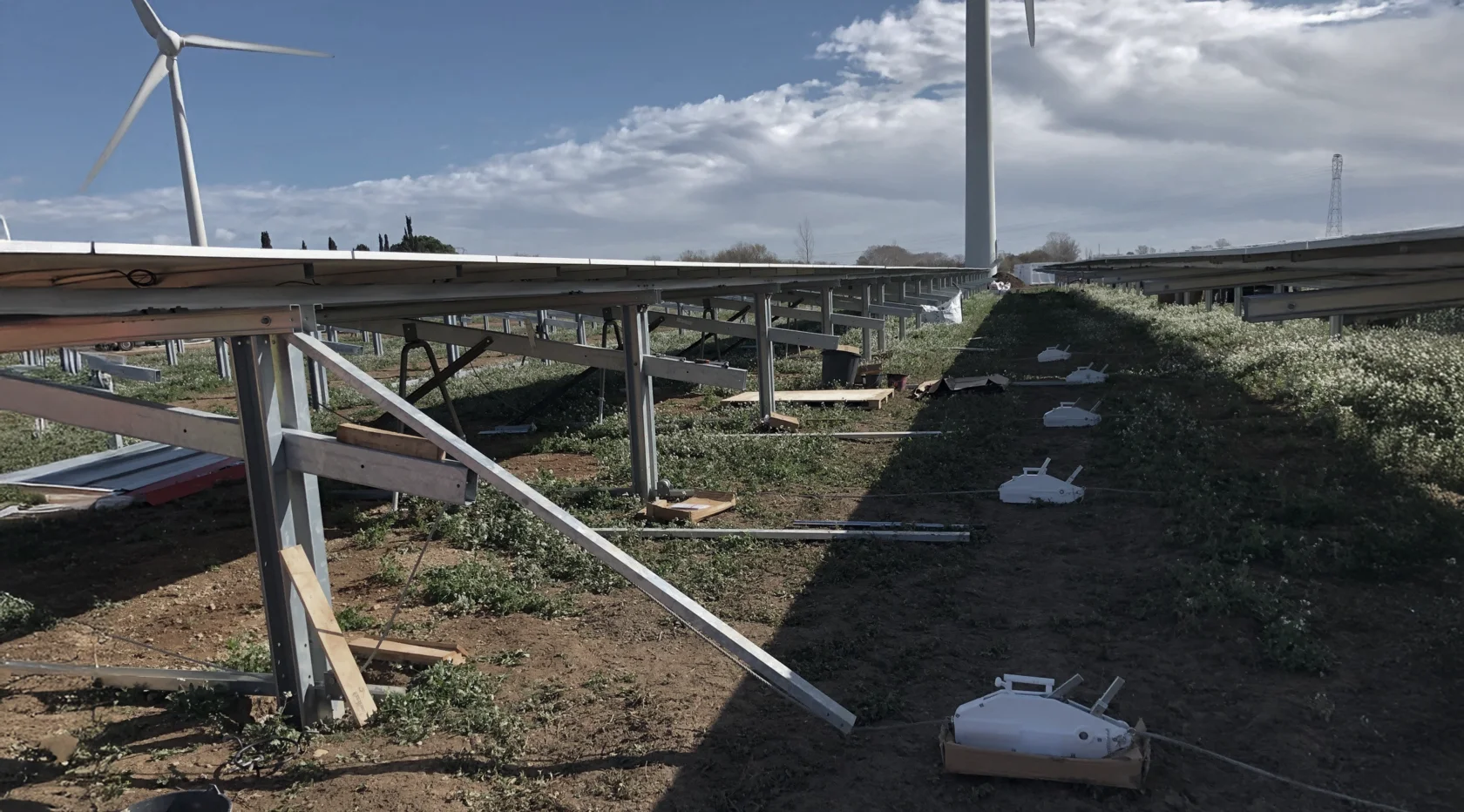 Der Fokus lag auf der Errichtung großformatiger Tragrahmen mit bereits montierten Solarmodulen in einem offenen Gelände.